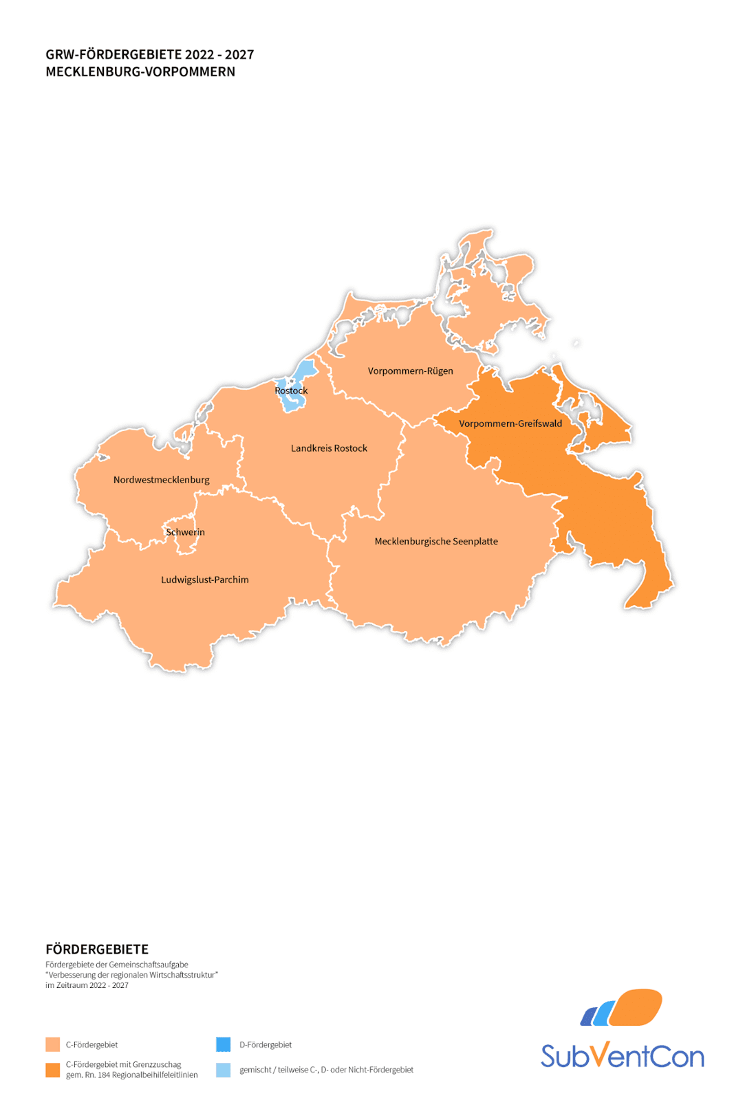 - Mecklenburg-Vorpommern verfügt hauptsächlich über C oder C+ Fördergebiete